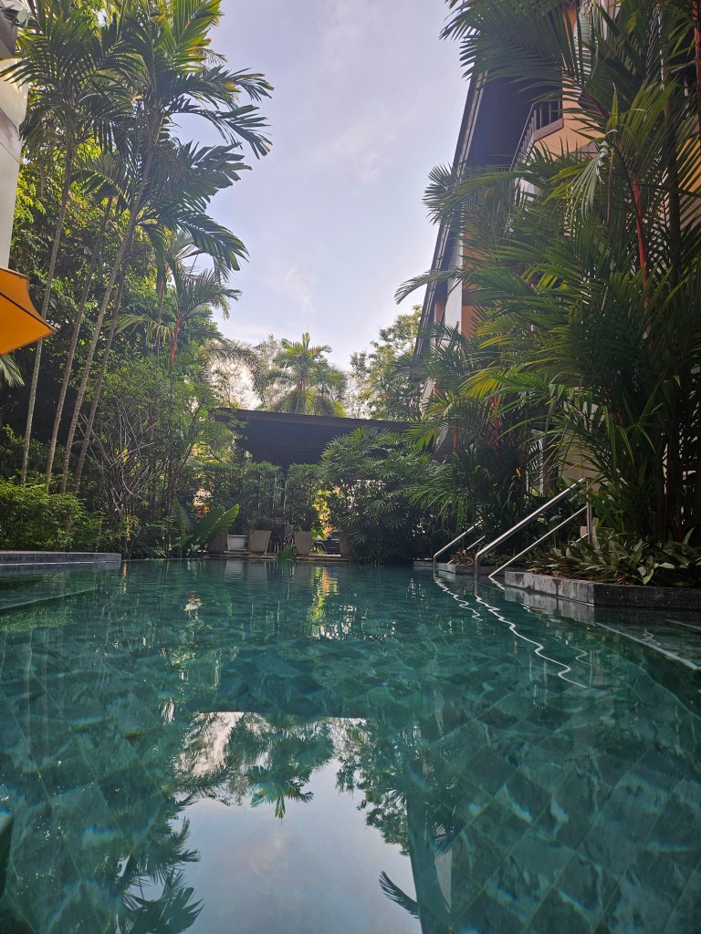M-am cazat într-o căsuță la Railay Bay Resort & Spa, un loc absolut minunat. Căsuța avea un gard care asigura intimitate maximă, iar în curte mă aștepta o mică piscină/jacuzzi perfectă pentru relaxare. M-am simțit excelent aici, cu senzația că sunt complet desprinsă de agitația lumii.