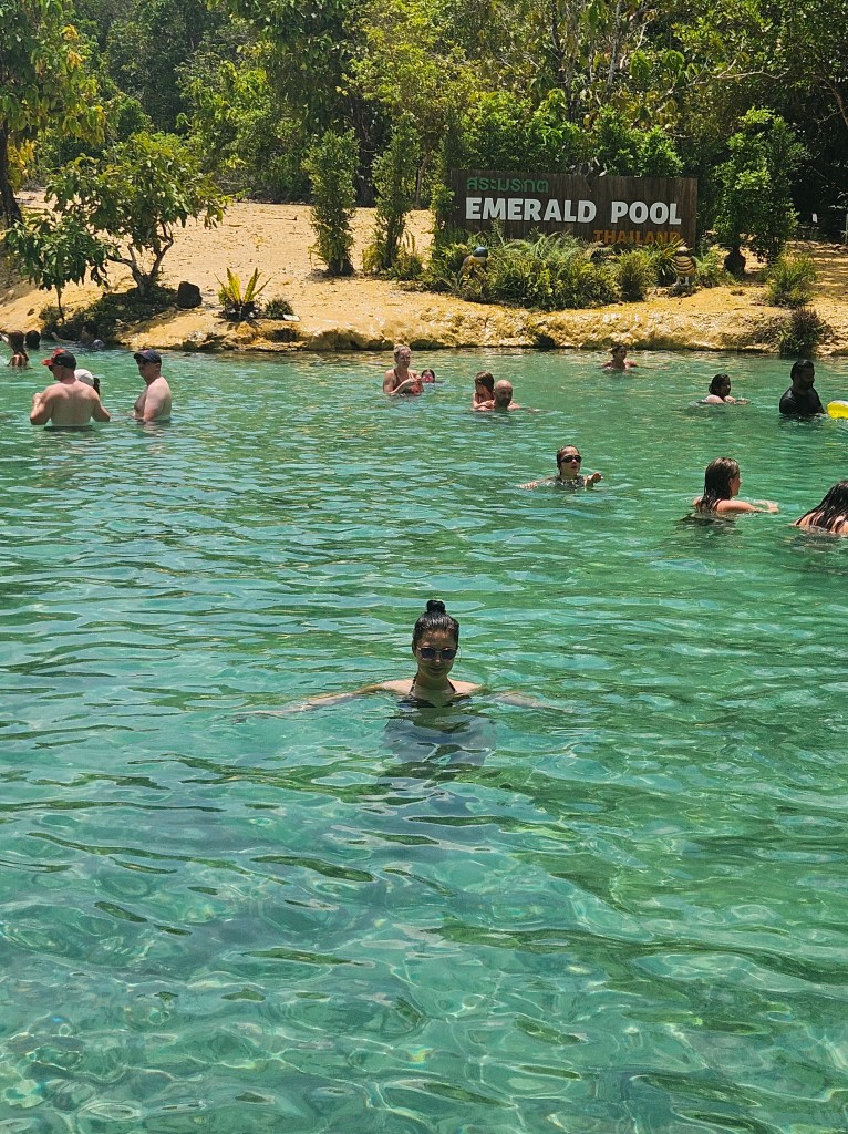 💦 Emerald Pool – Am făcut baie într-o piscină naturală cu apă verde-smarald. O experiență absolut revigorantă! În cultura thailandeză, apa cristalină a Emerald Pool este considerată un simbol al purificării sufletului și al conexiunii cu natura. Localnicii o văd ca pe un loc sacru, iar mulți vizitatori vin aici nu doar pentru relaxare, ci și pentru a medita sau a se reculege în liniștea pădurii. Unii localnici cred că un călugăr budist a meditat în această zonă timp de mulți ani, atingând un nivel înalt de iluminare spirituală. Se spune că, în urma puterii sale divine, apele izvorului au căpătat o culoare de smarald, simbolizând claritatea minții și puritatea sufletului.
