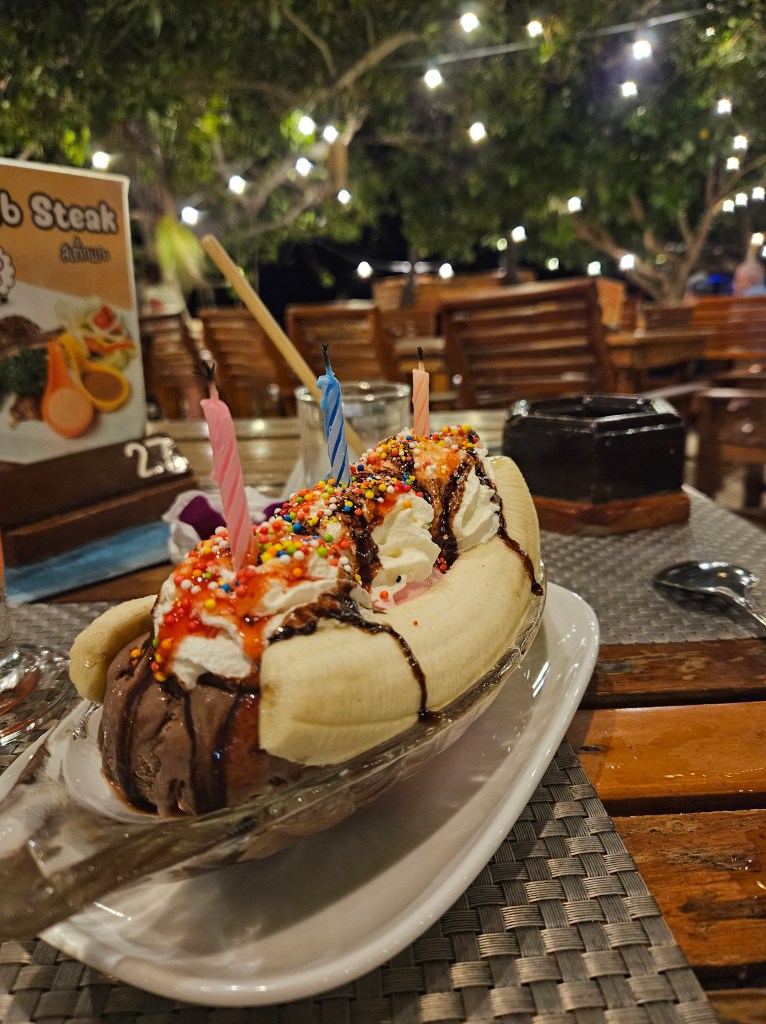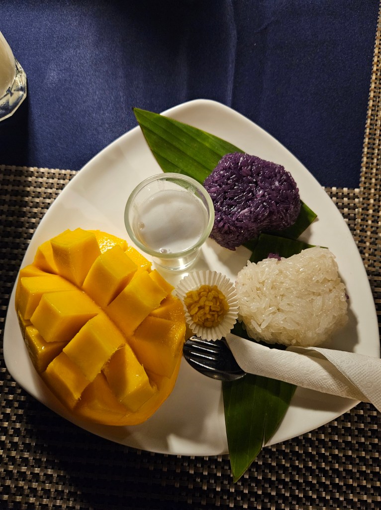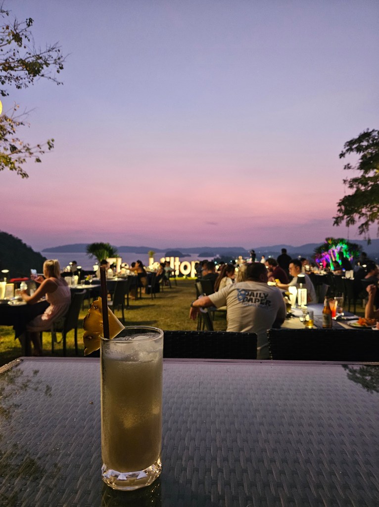 Am făcut o scurtă plimbare pe plajă și prin stațiune, explorând atmosfera vibrantă a locului. Seara, am ales să iau cina la The Hilltop, un loc cu o vedere spectaculoasă asupra oceanului. M-am bucurat de un apus superb, în timp ce savuram sticky rice cu fructul pasiunii și un binemeritat Hugo. 🌅✨