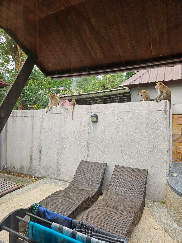 Într-una dintre zile, am avut parte de o surpriză mai puțin plăcută: o invazie de maimuțe chiar în curtea căsuței mele! Nu puteam ieși din cameră, iar momentul a devenit cu adevărat tensionat când am realizat că una dintre maimuțe tocmai născuse. În fața mea erau peste 20 de maimuțe care păreau că au preluat controlul total asupra curții. În cele din urmă, a trebuit să sun la recepție, iar cei de la resort au venit să mă ia cu o mașinuță – pentru că ieșirea era complet blocată.