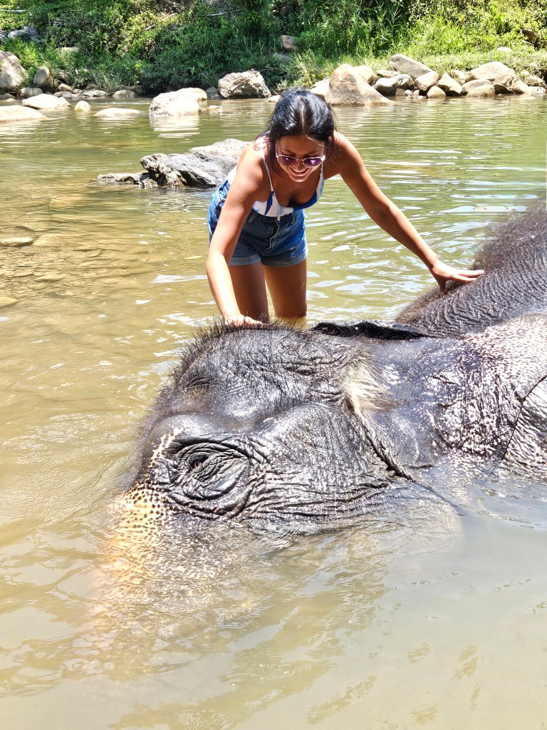 ✔ Vizită la sanctuarul elefanților – un loc unde elefanții salvați din turismul abuziv sunt îngrijiți. Am avut ocazia să îi hrănesc și să petrec timp cu ei în condiții 100% etice.